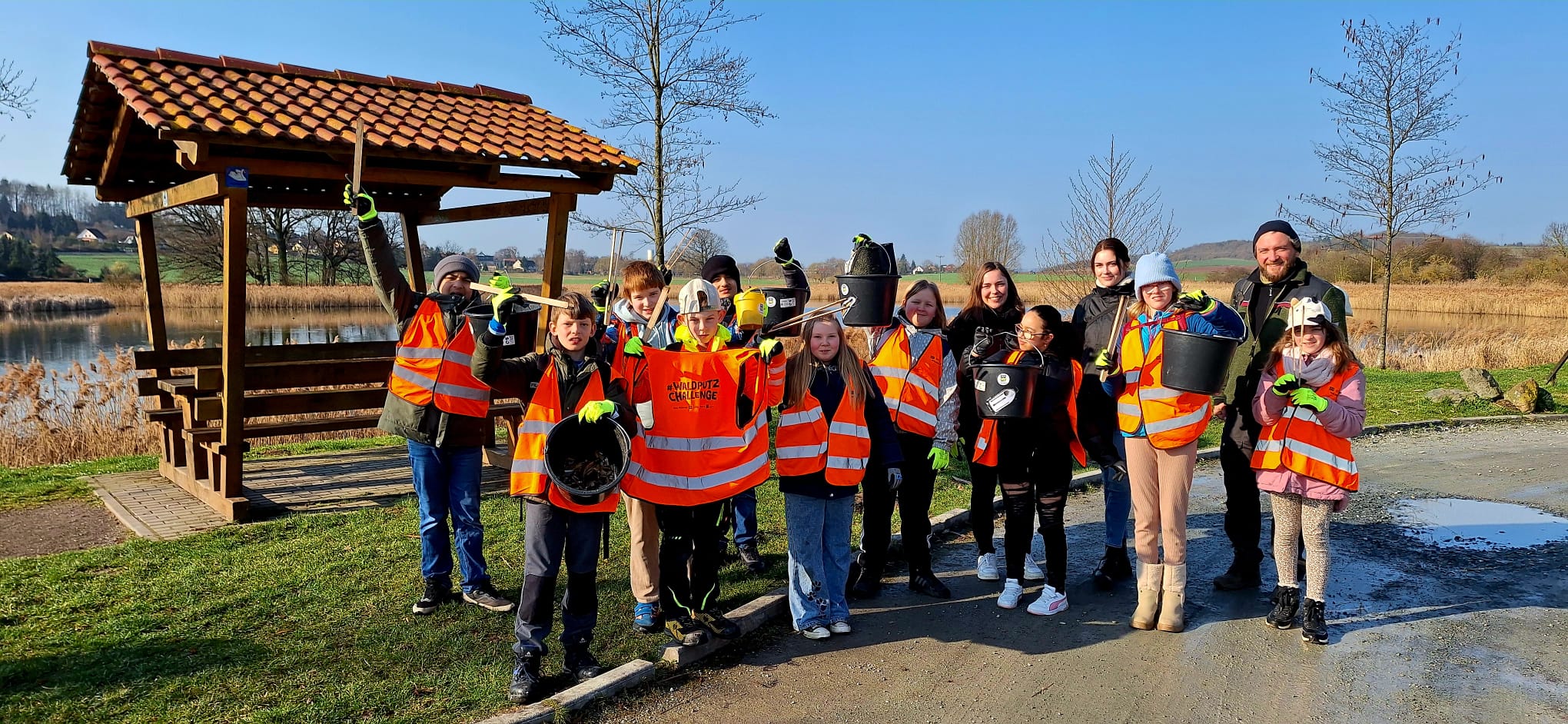 Heute haben die Schülerinnen und Schüler der 3. und 4. Klasse der Hainspitzer Schule im FFH-Gebiet, im Park und rund um den See Müll gesammelt. Die Waldputz-Challenge ist ein Kooperationsprojekt der Schutzgemeinschaft Deutscher Wald und der Funke Mediengruppe. Schirmherrin des Projektes ist Staatssekretärin Karin Arndt vom TMUENF.
