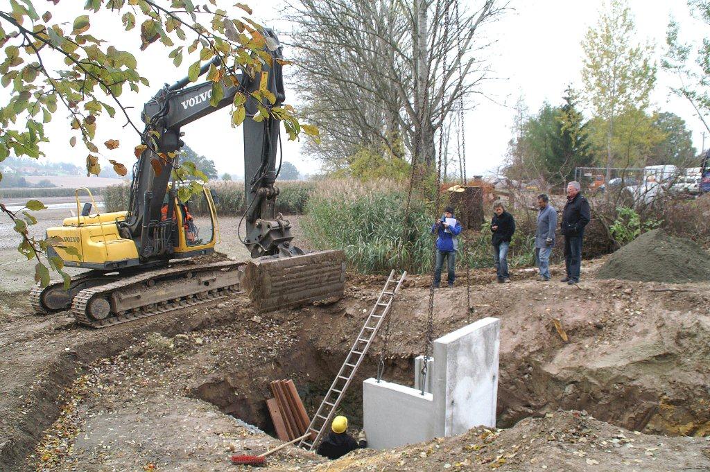 Im August wurde auch die Einbindung in das bereits seit 1993 vorhandene Auffangbecken der gemeinsamen Kläranlage von Hainspitz und Petersberg geschaffen. Hier die Arbeiten im Wethaugrund an der B7.